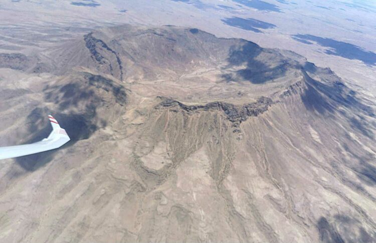 So haben in diesem Jahr schon mehrere Piloten dieses Naturwunder, ein Vulkankrater, der möglicherweise nie aktiv war, erreicht. Das Foto stammt von gestern bei einem Flug von Georg Kirchner und Benni Böhm im Arcus, wo sie sich den Krater aus allerbester Nähe (ein bisschen sehr nah?) ansehen konnten.