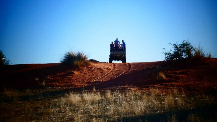Auch die Fahrt auf dem offenen Wagen macht immer wieder Spaß und spannend wird es, wenn die Wagen auf die Düne hochkommen müssen. Aber gestern machte das Annalie perfekt mit dem großen Nissan Safari.